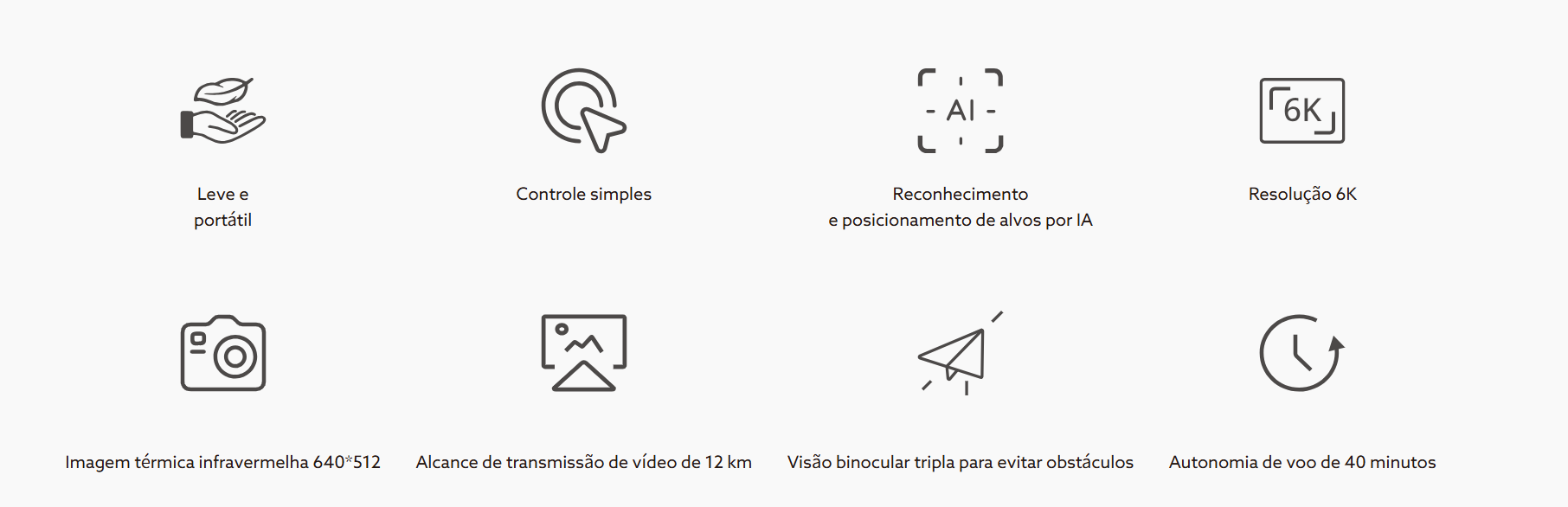 As aeronaves da série EVO Lite Enterprise pesam apenas 866 gramas e têm dimensões dobradas de apenas 210*123*95mm, o que facilita o transporte em uma mochila. Com operação simples, são ideais para a execução eficiente de missões por um único operador.